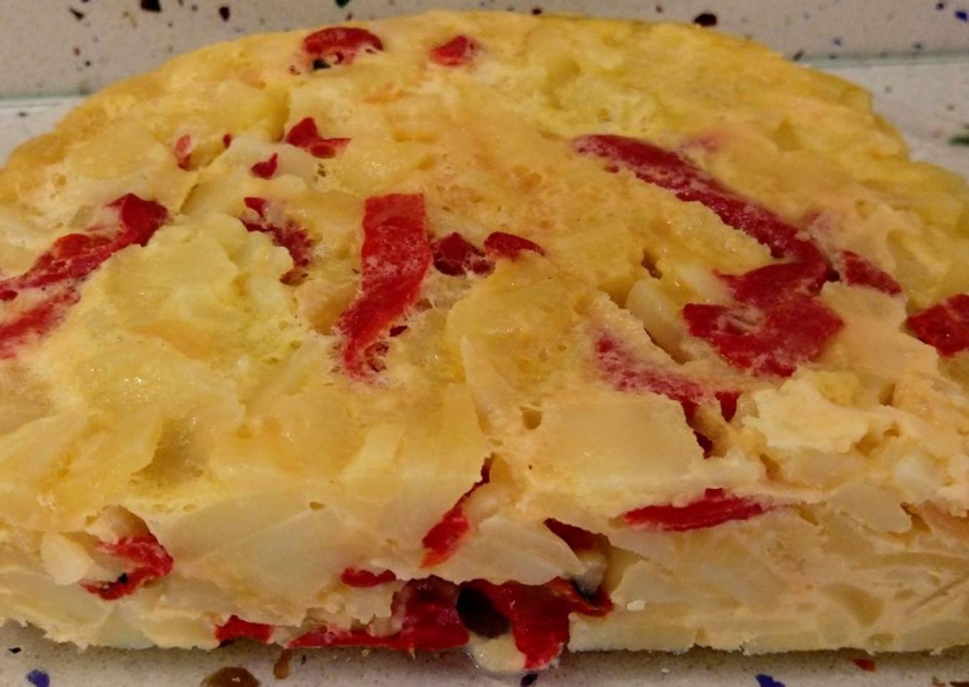 Tortilla de patatas, cebolla y pimientos al vapor
